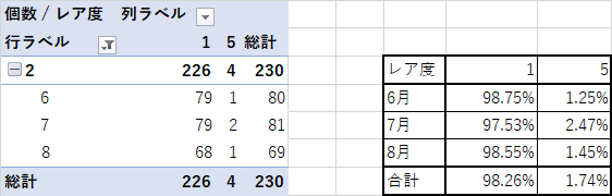 確率が変わるってことはないだろうと思っていたのでそこは予想通り。