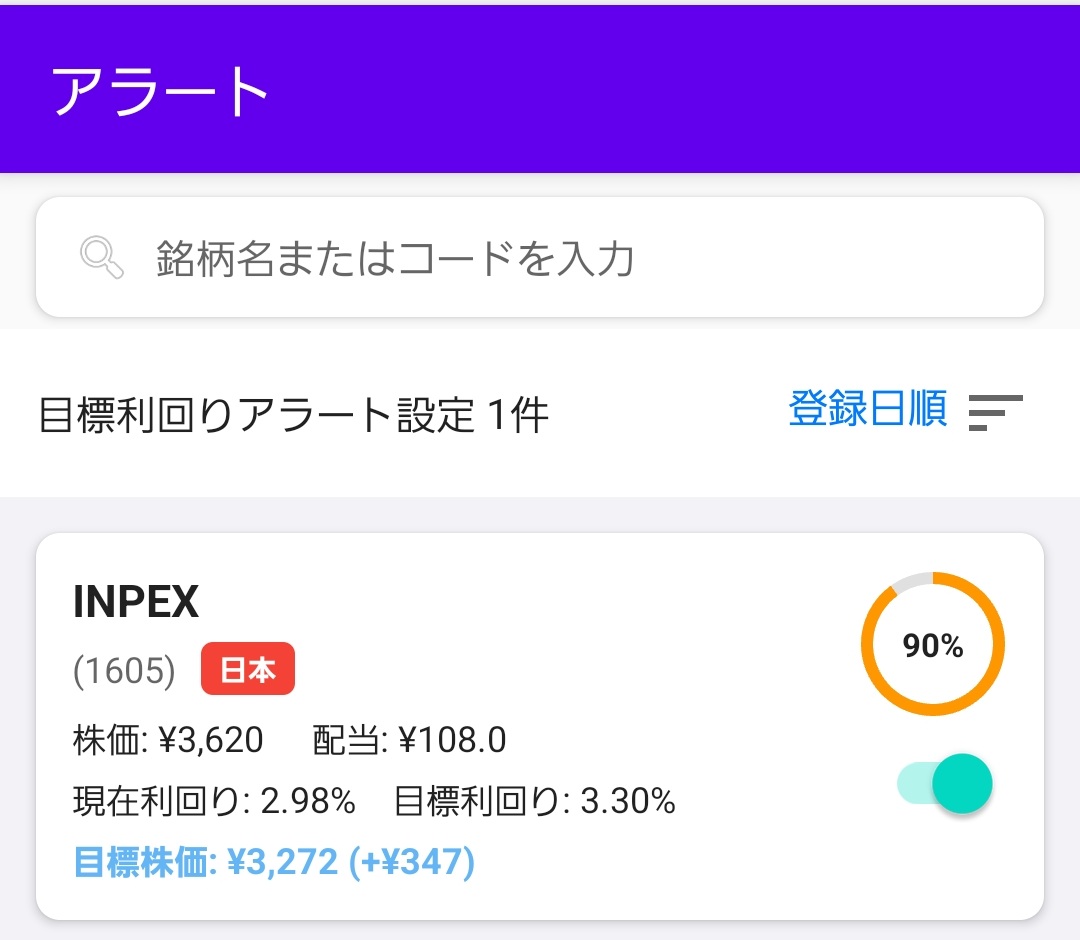 設定した利回りに到達すると通知してくれる機能も追加されました。